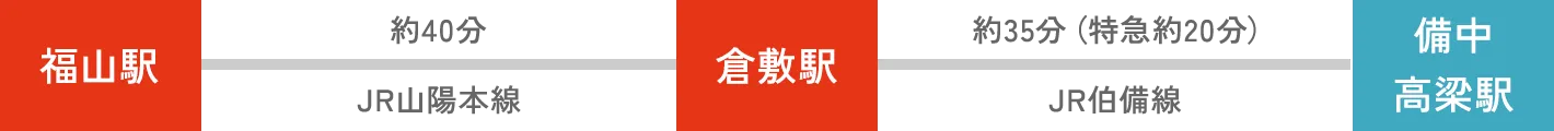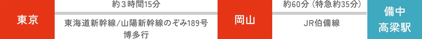 西日本の交通の接点としても知られる県都 岡山市とは、JR伯備線や岡山自動車道などで結ばれ、市内には3本の国道が縦横に走り各地からのアクセスも容易です。