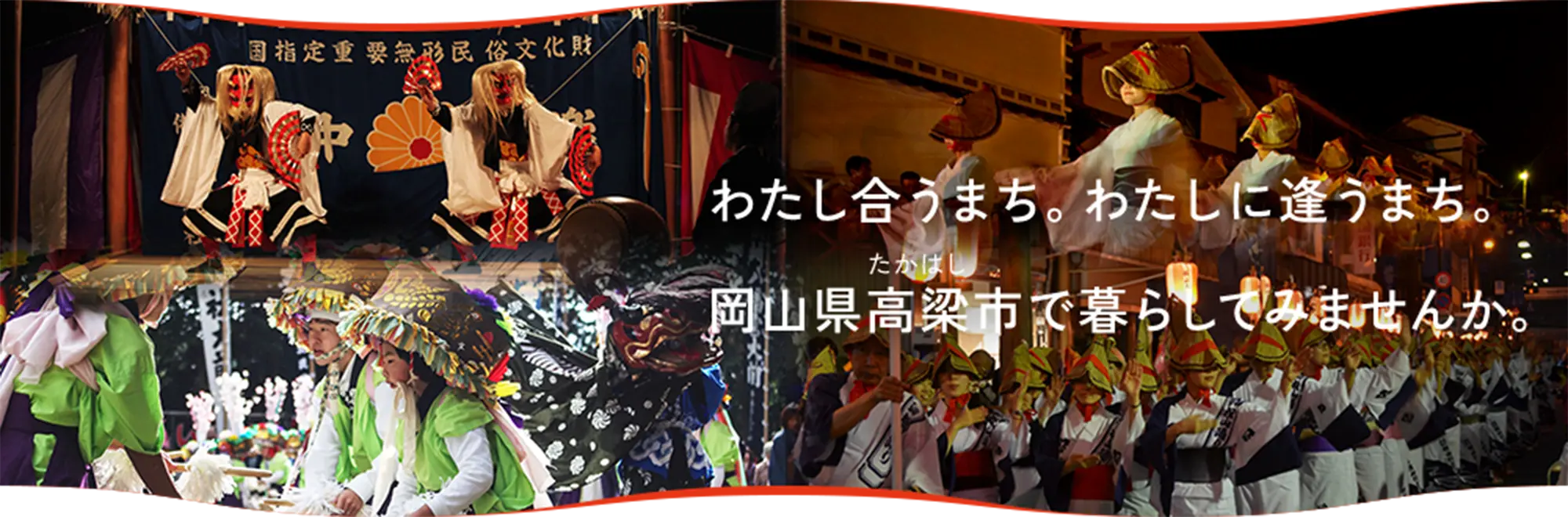 また、高梁には、現存12天守のひとつで国重要文化財の「備中松山城」や令和2年度に日本遺産に認定されたジャパンレッド発祥の地「吹屋」、国重要無形民俗文化財の「備中神楽」や、江戸時代から伝えられている「備中たかはし松山踊り」「成羽愛宕大花火」があり、長い歴史と豊かな伝統文化を受け継ぐ町です。4年制大学のある学園都市でもあり、若い力も集まり、社会人のための学びの場も充実しています。 (https://www.city.takahashi.lg.jp/site/sumouyo/takahashi-gaiyou.html 「健幸都市たかはし」 - 高梁市公式ホームページより引用)