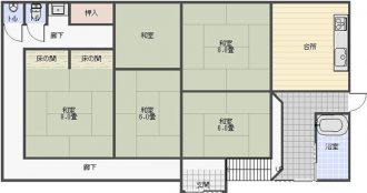 1階:和室5部屋、台所(現状土間)、風呂、トイレ 2階:3部屋 |