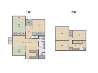1階:和室8畳・6畳、洋室、LDK、風呂、トイレ、洗面室